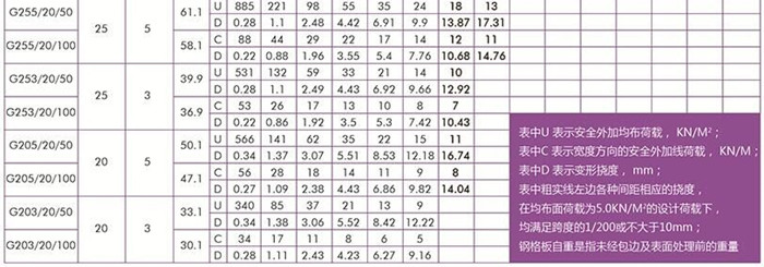 平面型扁鋼中心距為20常用鋼格板規格型號及安全荷載表